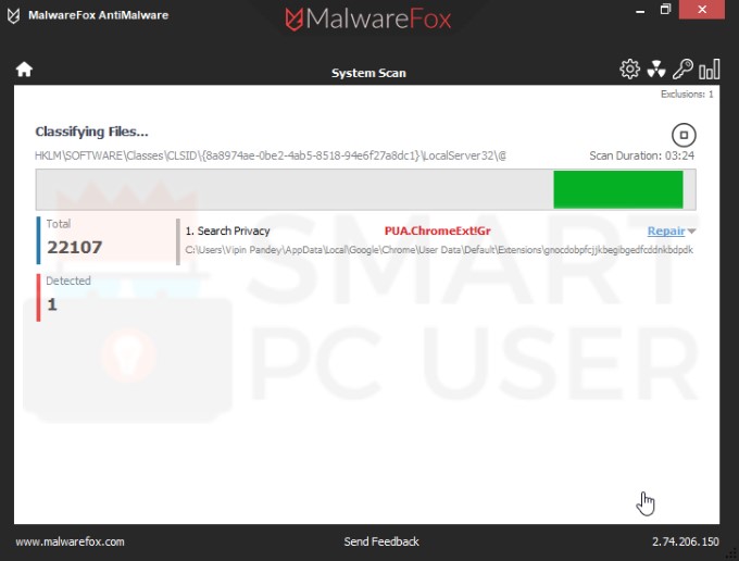 See how MalwareFox detects SearchPrivacy.co in less than 4 minutes.